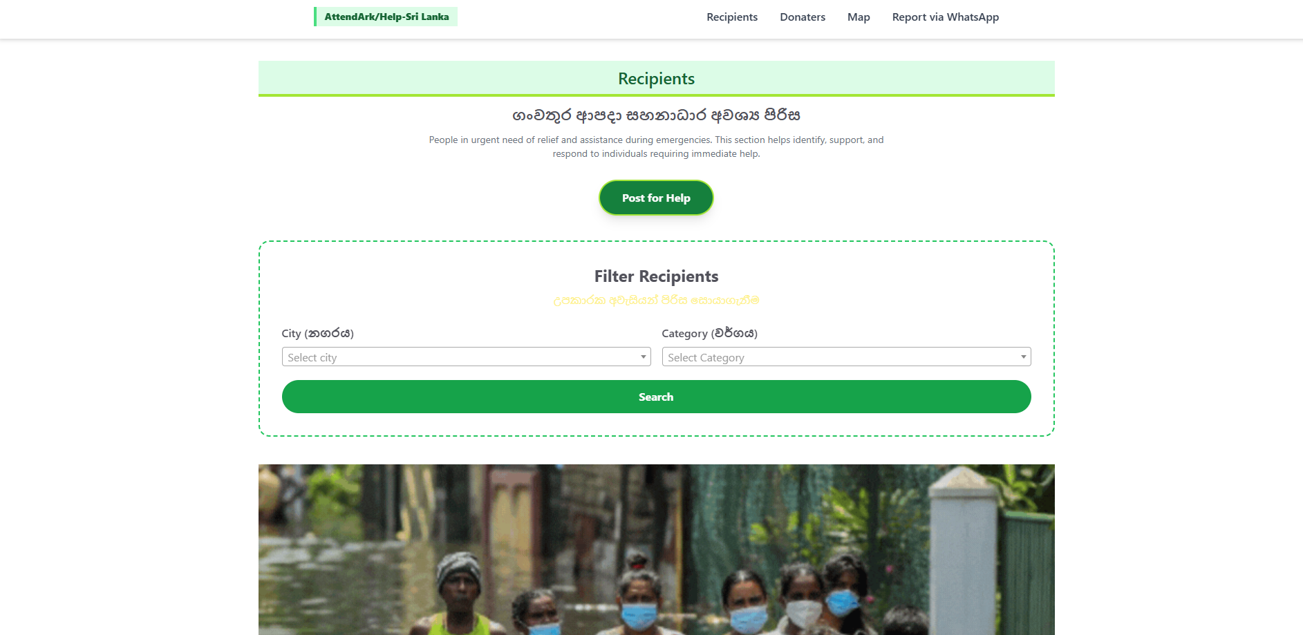 In Sri Lanka , A Platform connecting flood victims with real-time resources, shelters, and aid during emergencies.
